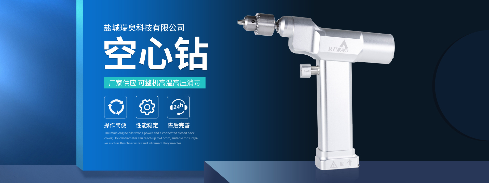 鹽城瑞奧科技有限公司主要產品:醫用電動鋸鉆系列(可高溫高壓消毒和熏蒸消毒兩種):包含骨鉆、擺鋸、胸骨鋸、空心骨鉆、開顱鉆、顱骨銑等等,適用于骨科、腦外科、神經外科、胸外科、手足及顯微外科、脊柱外科、整形外科等各種手術的要求。電動石膏鋸可切割高分子繃帶、石膏等?;A器械系列:咬骨鉗,髓核鉗,椎板咬骨鉗,持骨鉗,四肢骨折手術器械包等。